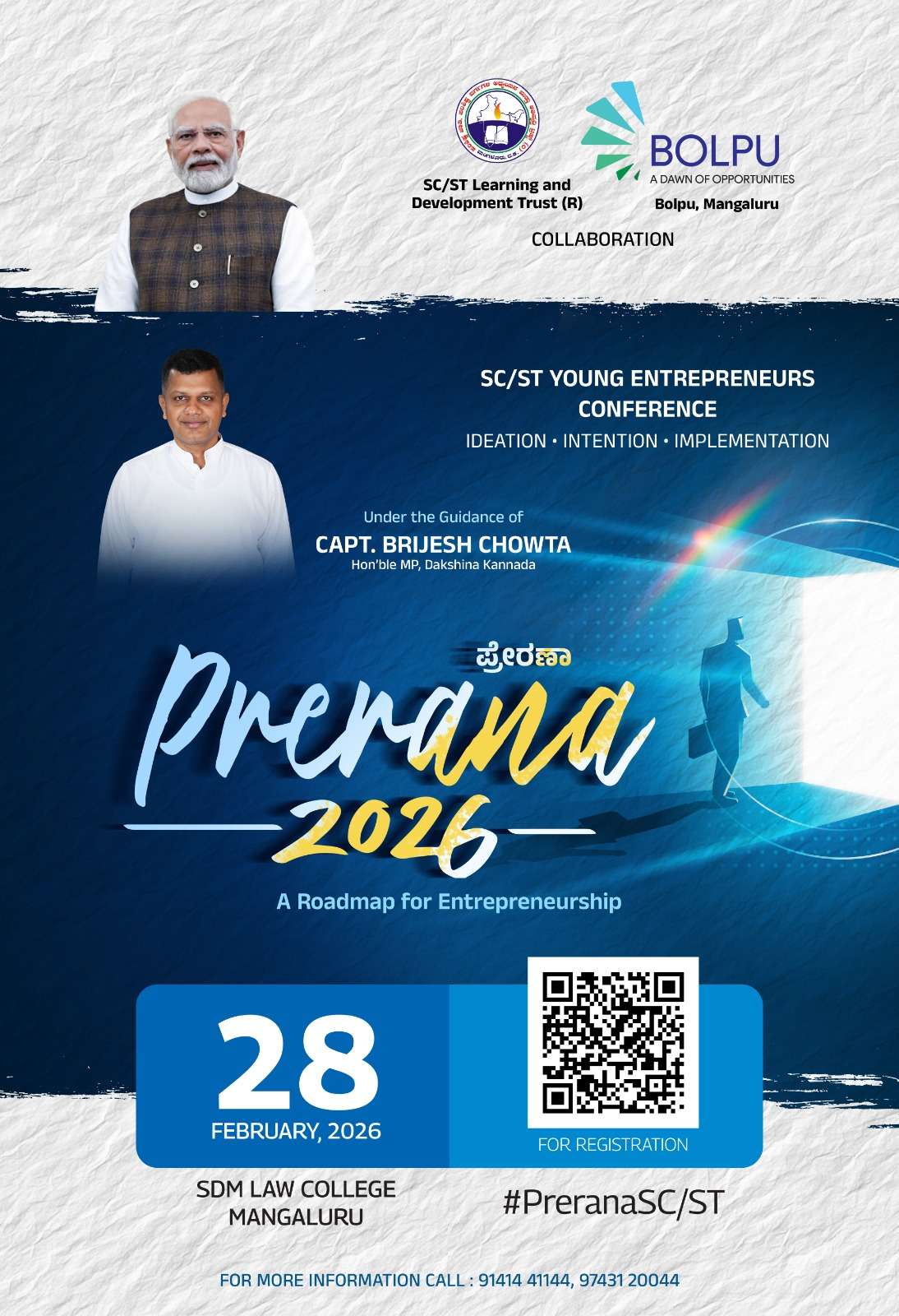 ಪ್ರಧಾನಮಂತ್ರಿ ನರೇಂದ್ರ ಮೋದಿ ಅವರ ‘ಆತ್ಮನಿರ್ಭರ ಭಾರತ’ದ ಕನಸಿನಿಂದ ಪ್ರೇರಿತರಾಗಿ, ನಮ್ಮ ನೆಲದ ಉದ್ಯಮಶೀಲತೆಯ ಉತ್ಸಾಹಕ್ಕೆ ಮರುಜೀವ ನೀಡುವ ನಮ್ಮ ಹೆಮ್ಮೆಯ ಪ್ರಯತ್ನವಾಗಿರುವ ‘ಬೊಲ್ಪು’ ಮತ್ತು SC/ST ಅಧ್ಯಯನ ಹಾಗೂ ಅಭಿವೃದ್ಧಿ ಟ್ರಸ್ಟ್ ಸಹಯೋಗದೊಂದಿಗೆ ಈ ಪ್ರೇರಣಾ ಸಮಾವೇಶ ಹಮ್ಮಿಕೊಳ್ಳಲಾಗಿದೆ. ನಮ್ಮ ಊರಿನ ಯುವಕರು ಉದ್ಯೋಗಾಕಾಂಕ್ಷಿಗಳಾಗುವ ಬದಲು ಉದ್ಯೋಗದಾತರನ್ನಾಗಿ ರೂಪಿಸುವುದು ಈ ಸಮಾವೇಶದ ಪ್ರಮುಖ ಗುರಿ. ಅಲ್ಲದೆ, ಪ್ರಧಾನಮಂತ್ರಿ ನರೇಂದ್ರ ಮೋದಿ ಅವರು ಕೂಡ ಎಸ್ ಸಿ- ಎಸ್ಟಿ ಸಮುದಾಯದ ವಿದ್ಯಾರ್ಥಿಗಳಲ್ಲಿಯೂ ಉದ್ಯಮಶೀಲತೆಯ ಮನೋಭಾವ ಬೆಳೆಸುವುದಕ್ಕೆ ಹೆಚ್ಚಿನ ಆದ್ಯತೆ ನೀಡುತ್ತಿದ್ದಾರೆ. ಹೀಗಾಗಿ, ಅವರ ಆಶಯದಂತೆ ಈ ಪ್ರೇರಣಾ ಉದ್ಯಮಶೀಲತಾ ಸಮಾವೇಶ ಹಮ್ಮಿಕೊಳ್ಳಲಾಗಿದೆ ಎಂದು ಕ್ಯಾ. ಚೌಟ ತಿಳಿಸಿದ್ದಾರೆ.