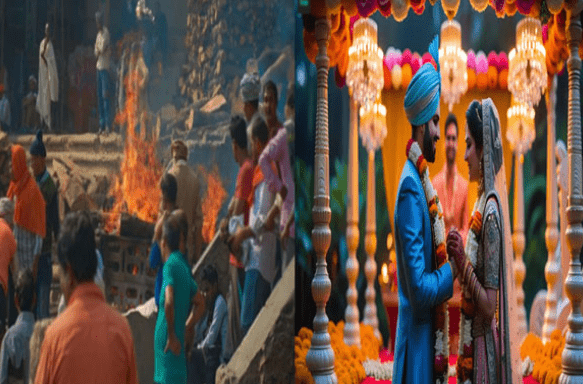 (ನ್ಯೂಸ್ ಕಡಬ) newskadaba.com, ಎ.29 ಮದುವೆ ಸಾಮಾನ್ಯವಾಗಿ ಎರಡು ಜೀವಗಳು ಹೊಸ ಜೀವನಕ್ಕೆ ಕಾಲಿಡುವ ಶುಭಘಳಿಗೆ. ಆದರೆ ಈ ಒಂದು ಶುಭ ಸಮಾಚಾರಕ್ಕೆ ಯಾವುದೇ ವಿಘ್ನ ಬರಬಾರದು ಎಂಬ ಕಾರಣಕ್ಕೆ ಉತ್ತಮ ಸ್ಥಳವನ್ನು ಆರಿಸಿ ವಿವಾಹವಾಗುತ್ತಾರೆ. ಆದರೆ ಅಲ್ಮೋರಾದಲ್ಲಿ ವಿಚಿತ್ರ ಮದುವೆ ಸಮಾರಂಭ ಇದೀಗ ಚರ್ಚೆಗೆ ಗ್ರಾಸವಾಗಿದೆ.ಅಂತ್ಯಕ್ರಿಯೆ ನಡೆಯುವ ಸ್ಮಶಾನದಲ್ಲೇ ನವ ಜೋಡಿ ಮದುವೆಯಾಗಿರುವ ಘಟನೆ ಉತ್ತರಾಖಂಡದ ಅಲ್ಮೋರಾದಲ್ಲಿ ನಡೆದಿದೆ. ಉರಿಯುವ ಚಿತೆಗಳ ನಡುವೆ ಸಪ್ತಪದಿ ತುಳಿದ ಈ ಘಟನೆ ಸಾಮಾಜಿಕ ಜಾಲತಾಣಗಳಲ್ಲಿ ಭಾರೀ ಚರ್ಚೆಗೆ ಕಾರಣವಾಗಿದೆ.