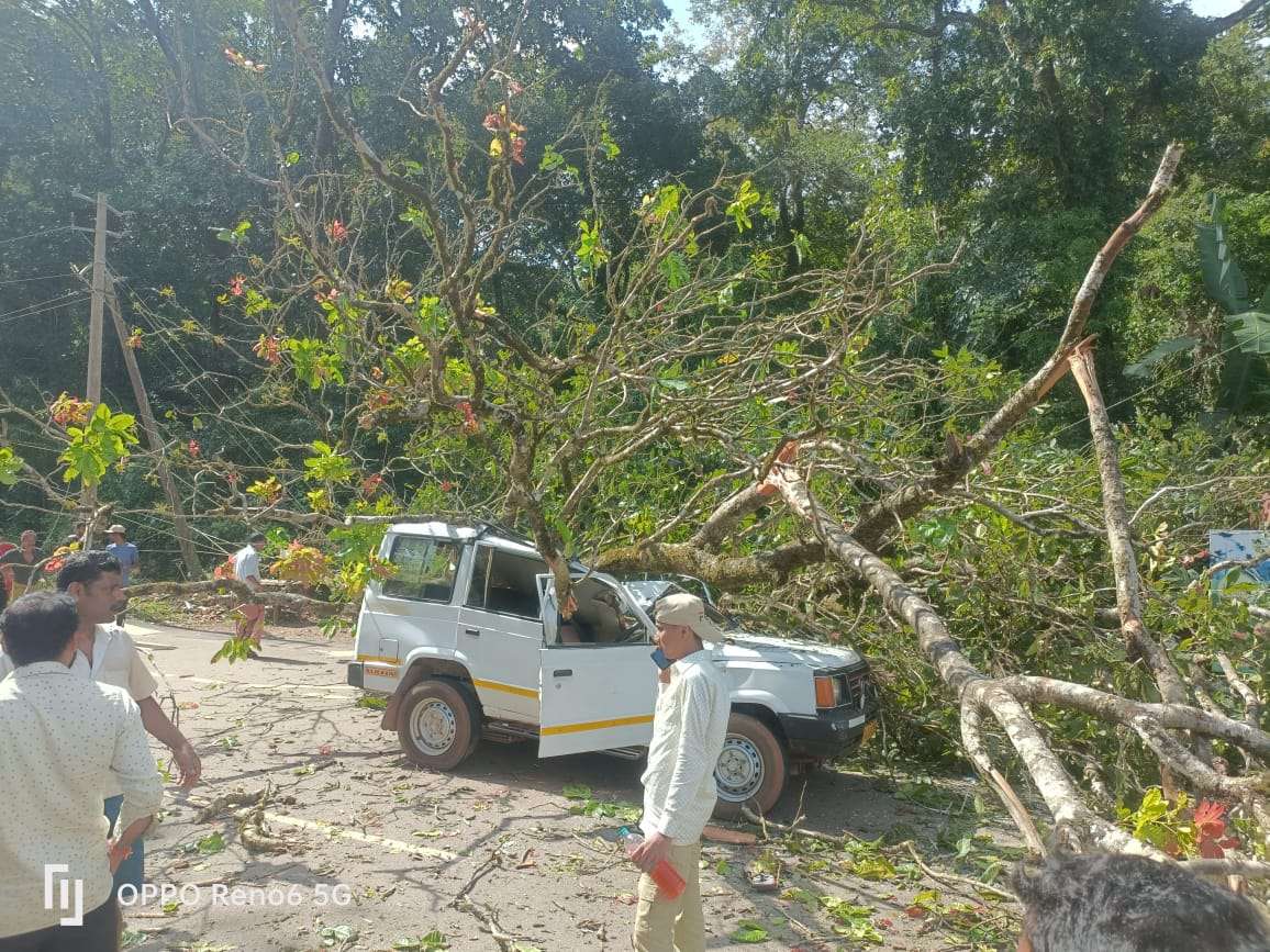 ಸುಬ್ರಹ್ಮಣ್ಯದಿಂದ ನೆಟ್ಟಣ ಕಡೆಗೆ ತೆರಳುತ್ತಿದ್ದ ಟಾಟಾ ಸುಮೋ ಹಾಗೂ ಕೈಕಂಬ ಜಂಕ್ಷನ್ ನಲ್ಲಿದ್ದ ಗೂಡಂಗಡಿಯ ಮೇಲೆ ಬೃಹತ್ ಗಾತ್ರದ ಮರ ಬಿದ್ದಿದ್ದು, ಘಟನೆಯಲ್ಲಿ ವಾಹನ ಚಾಲಕ ಬಿಳಿನೆಲೆ ನಿವಾಸಿ ಶೇಖರ್ ಹಾಗೂ ಮತ್ತೋರ್ವರು ಗಾಯಗೊಂಡಿದ್ದಾರೆ. ಗಾಯಾಳುಗಳನ್ನು ಆಸ್ಪತ್ರೆಗೆ ಕರೆದೊಯ್ಯಲಾಗಿದೆ. ಹೆಚ್ಚಿನ ಮಾಹಿತಿ ಇನ್ನಷ್ಟೇ ತಿಳಿದು ಬರಬೇಕಿದೆ.