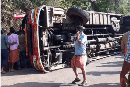 ಕಾಸರಗೋಡು: ಪ್ರವಾಸದ ಬಸ್ ಪಲ್ಟಿ ➤ 40 ಕ್ಕೂ ಅಧಿಕ ಮಂದಿಗೆ ಗಾಯ