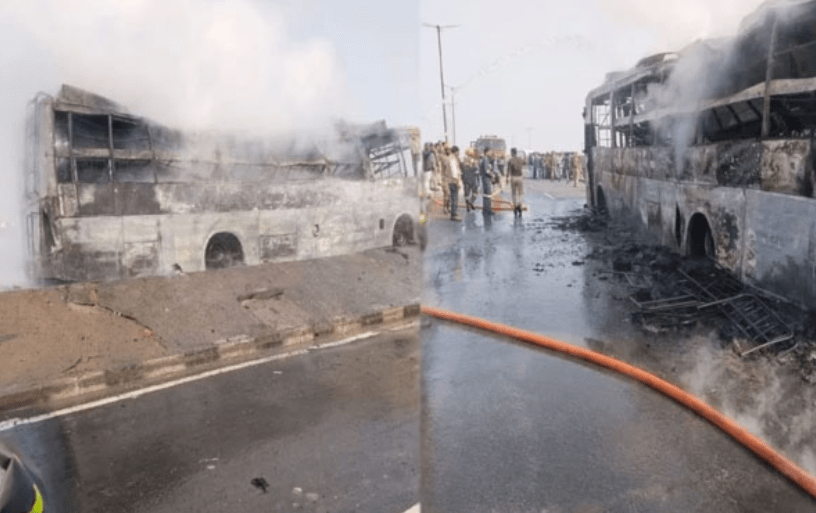 ಕರಾವಳಿ, ಬ್ರೇಕಿಂಗ್ ನ್ಯೂಸ್(ನ್ಯೂಸ್ ಕಡಬ) newskadaba.com, ನ.28: ಮೂವತ್ತರಿಂದ ನಲವತ್ತು ಪ್ರಯಾಣಿಕರನ್ನು ಹೊತ್ತು ಹೊರಟಿದ್ದ ದೆಹಲಿ-ವಾರಾಣಸಿ ಸ್ಲೀಪರ್ ಬಸ್ ಬೆಂಕಿಗಾಹುತಿಯಾಗಿರುವ ಘಟನೆ ನಡೆದಿದೆ.